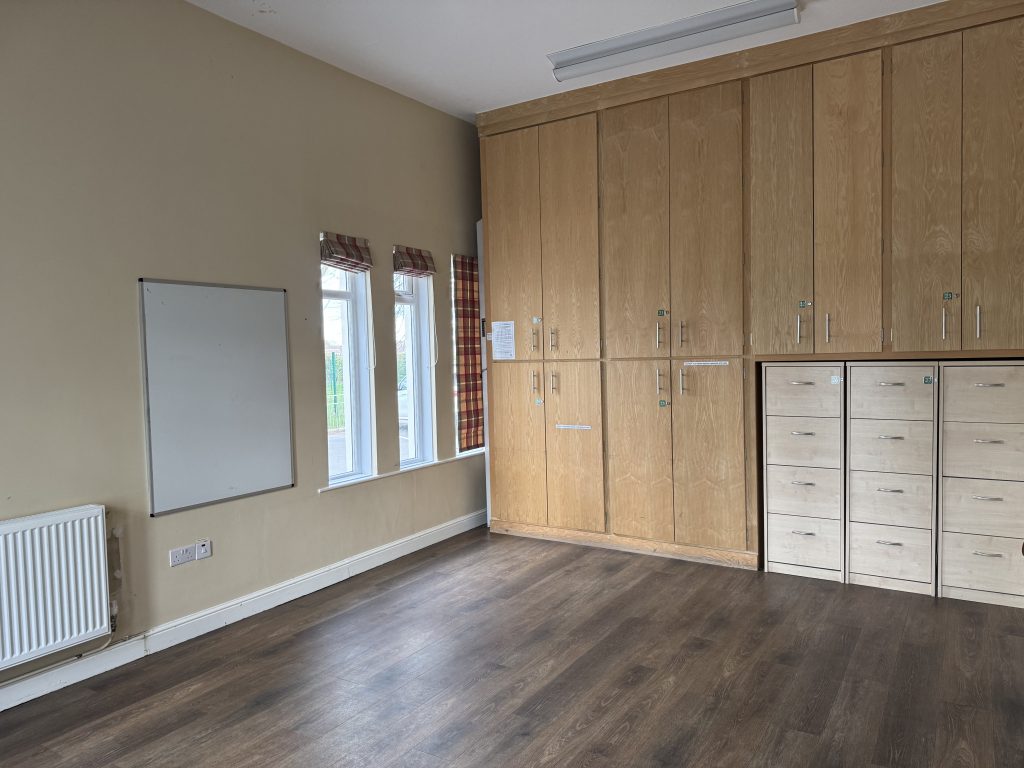 There is also a committee room suitable for meetings (approximate dimensions 5.4m long x 3.8m wide) and a kitchen with a dishwasher. There is car parking for 50 cars.